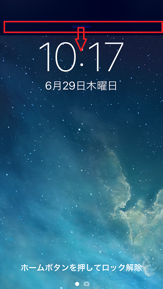 4、実際にロック画面から上から下へ画面を引っ張り出します。すると通知センターの表示が出来ます。通知をオンにしていない場合は、この画面は出ません。