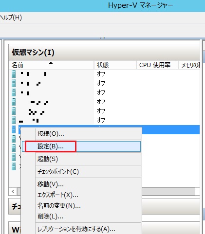 1、Hyper-Vの管理画面より、USBブートさせたいゲスト設定を行います。