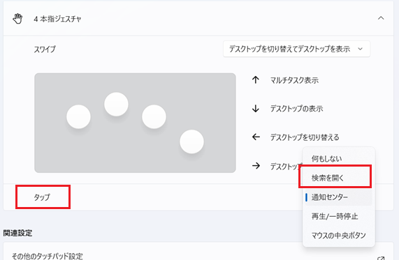 - Windows11で4本指タップに「検索を開く」を割り当てる具体的な手順