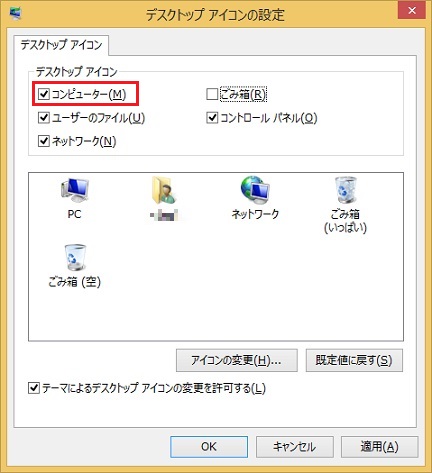 ここでは、Windows8とWindows8.1での、マイコンピュータ(コンピュータ)をデスクトップ上に出す方法を紹介しています。
